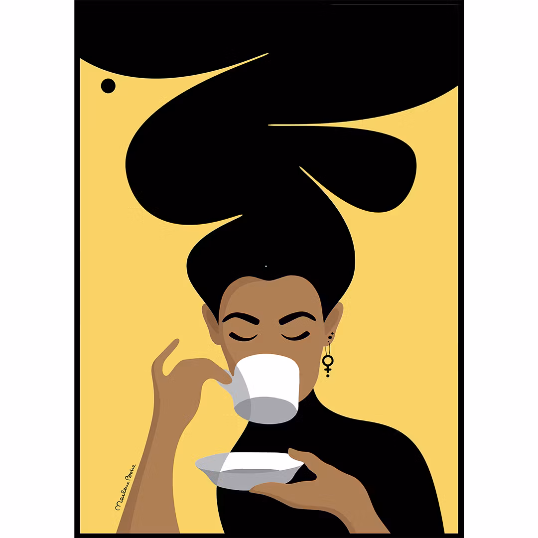 Kaffekvinnan | gul bakgrund | REA