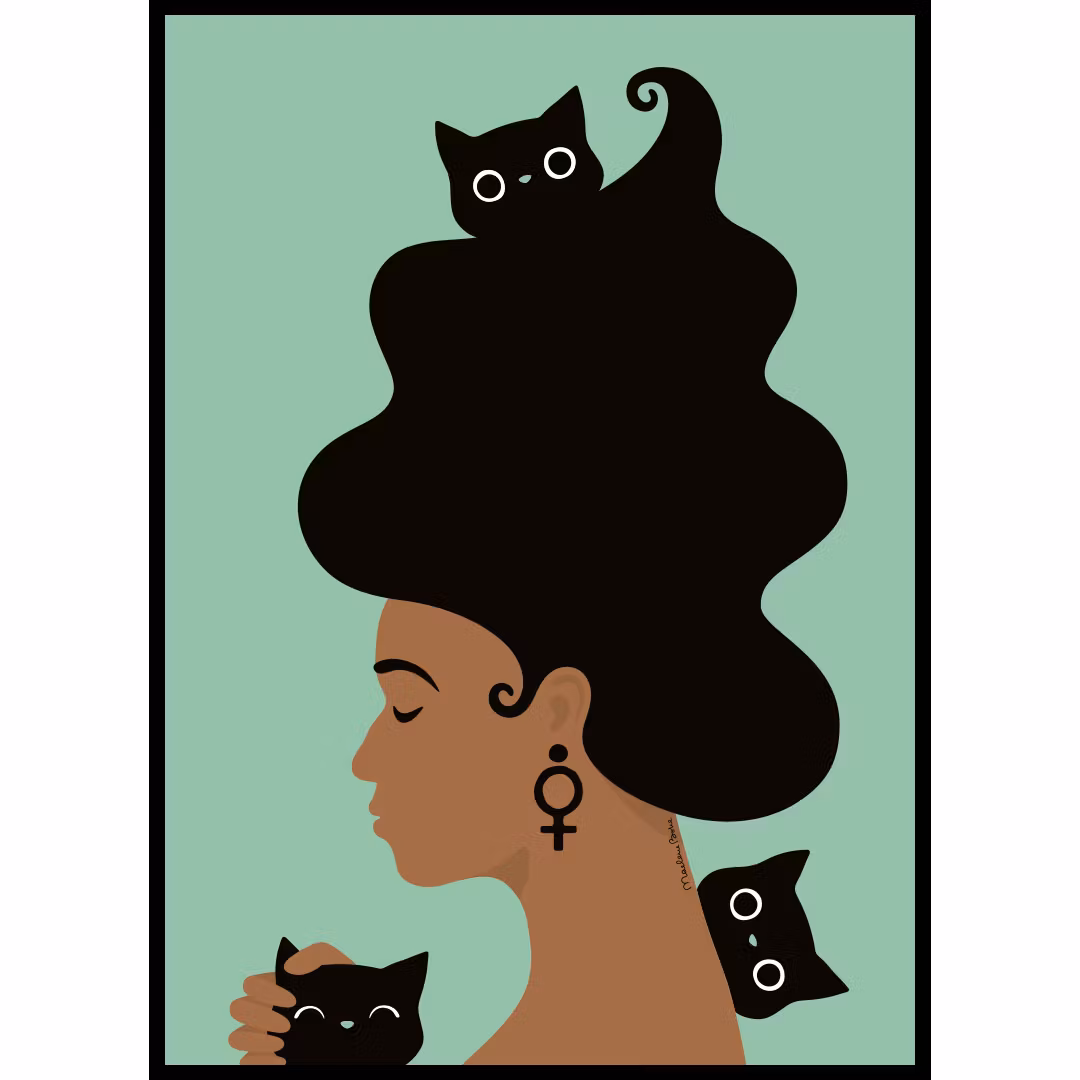 Print med motivet Kattkvinnan. Anledning till varför det ligger här i Fyndhörnan anges i rullistan ovan och förklaras nedan: